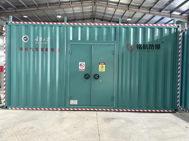 一般這些易燃易爆氣體都裝于防爆氣瓶中,集中置于防爆集裝箱內。