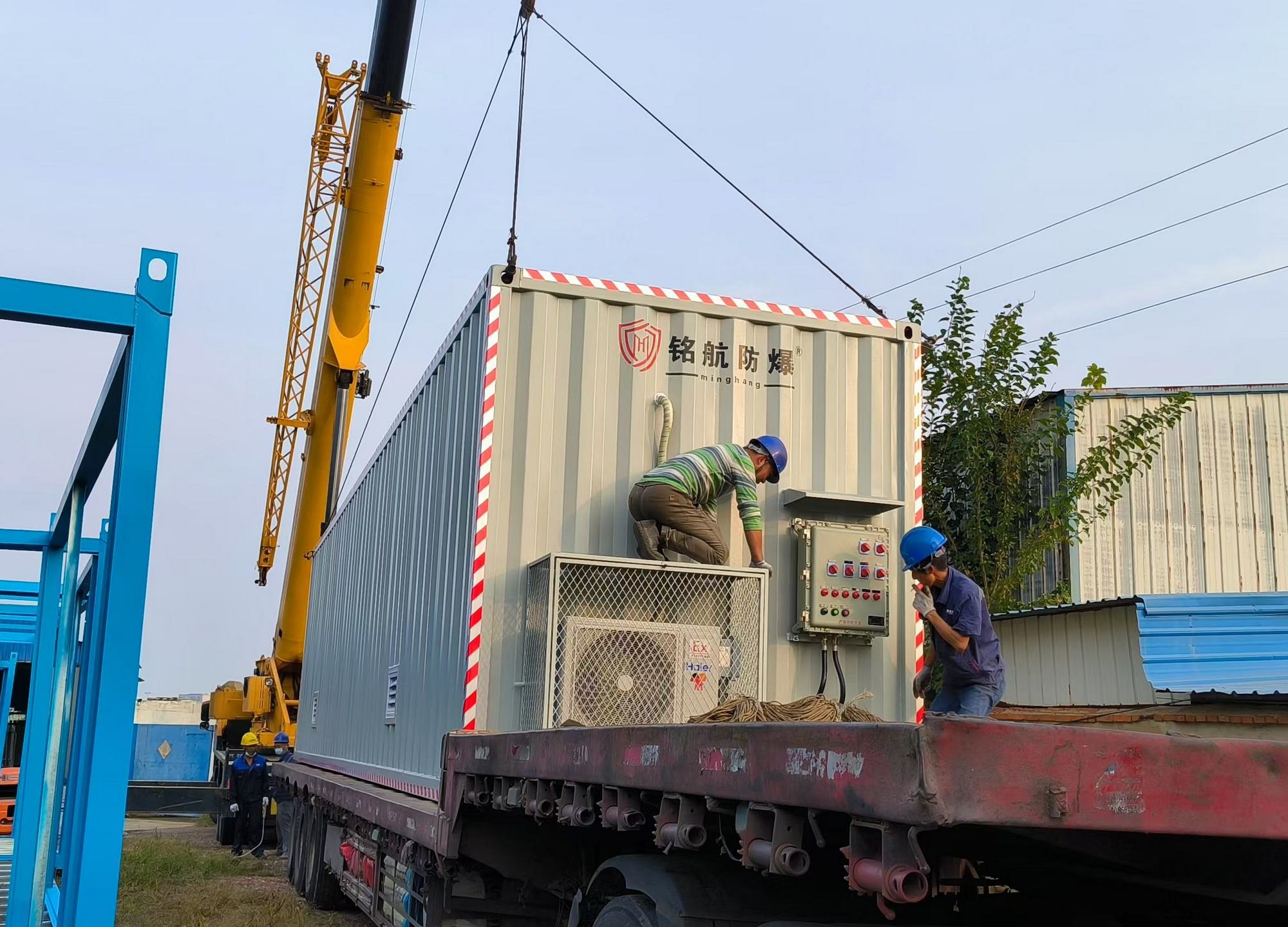 防爆集裝箱設(shè)有防爆配電箱 1 臺,內(nèi)部元器件采用正泰品牌,防爆標(biāo)志 EXdeIIBT4GB.滿足內(nèi)部照明、風(fēng)