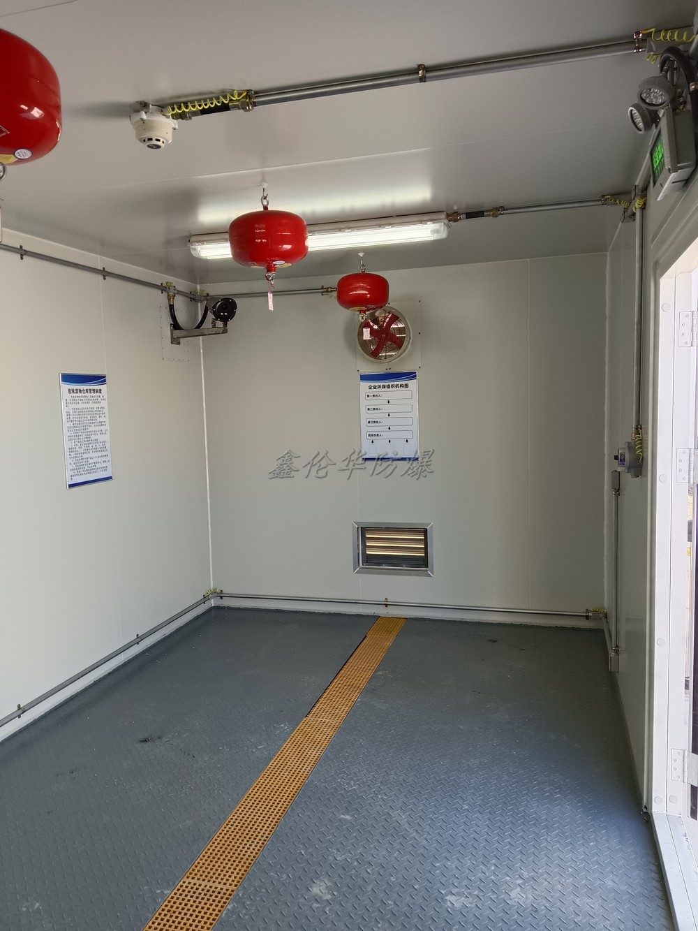 - 通風(fēng)與惰化:正壓通風(fēng)系統(tǒng)保持內(nèi)部壓力≥50Pa,防止可燃?xì)怏w滲入;配備氮?dú)舛杌b置,降低氧氣濃度至10%以下。